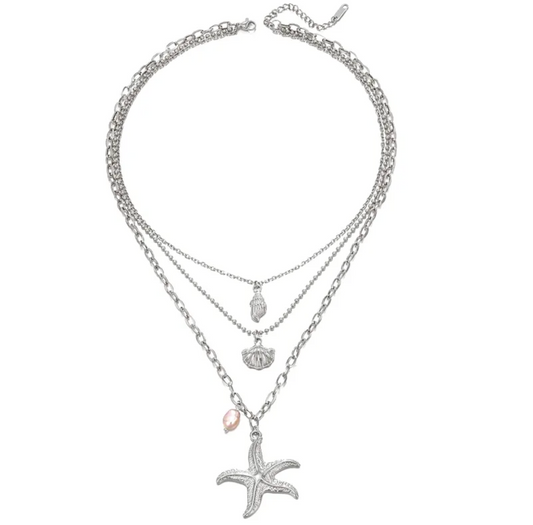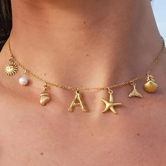 Shell and Starfish Bubble Letter Necklace